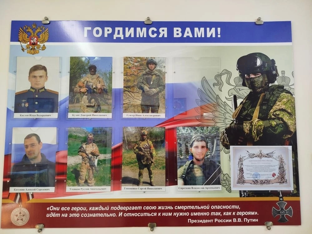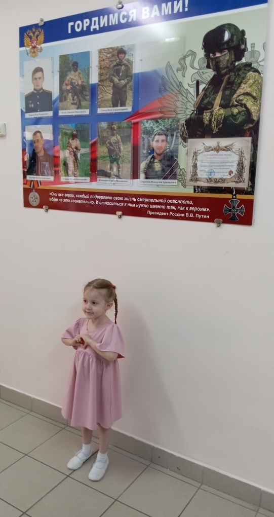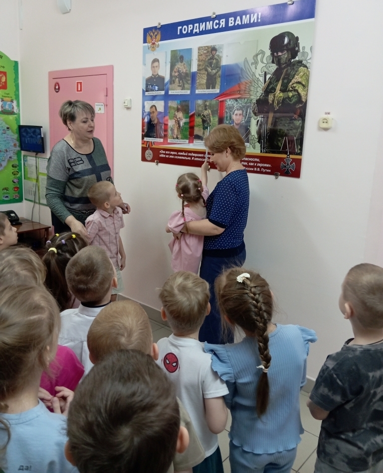 Завершилась тематическая неделя торжественным открытием доски Славы «Гордимся Вами!». Воспитанники групп №2,4,6, чьи папы служат в рядах СВО, прочитали стихи. Ребята все вместе исполнили песню, а заведующий учреждением Лариса Анатольевна, рассказала ребятам о героях, фотографии которых размещены на доске Славы!