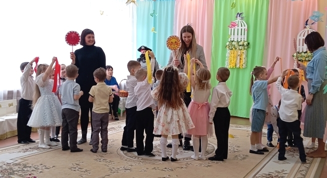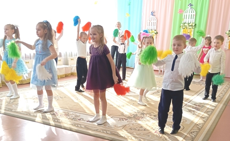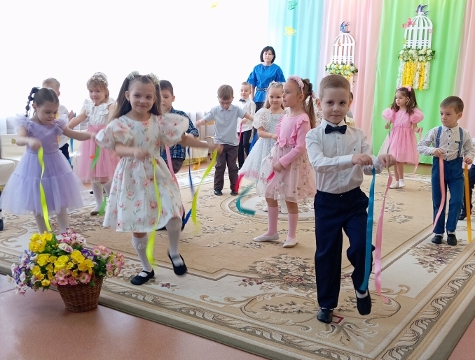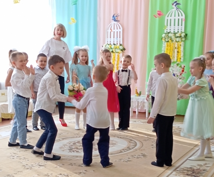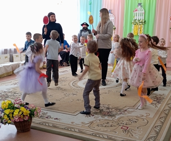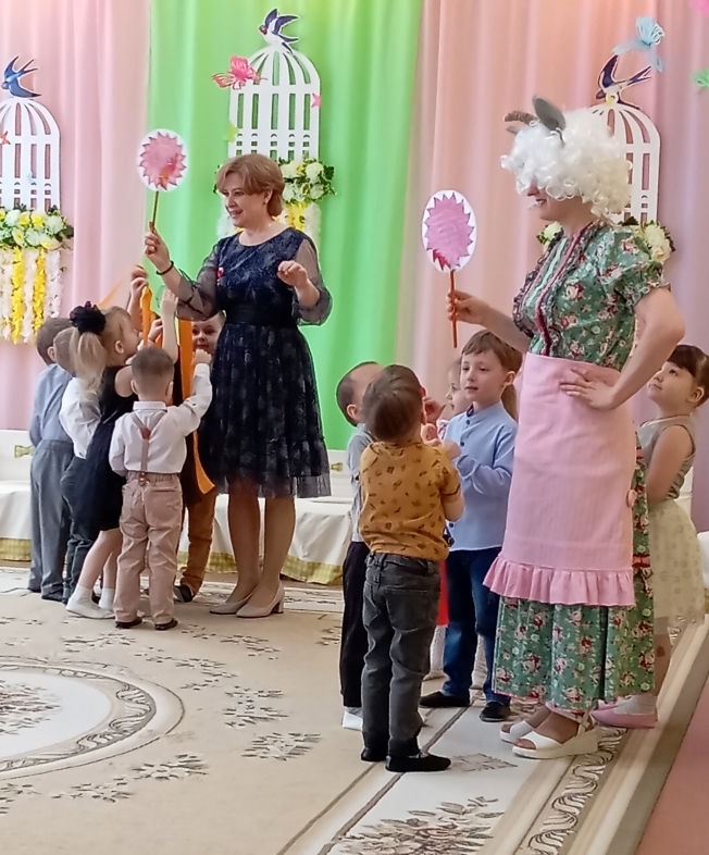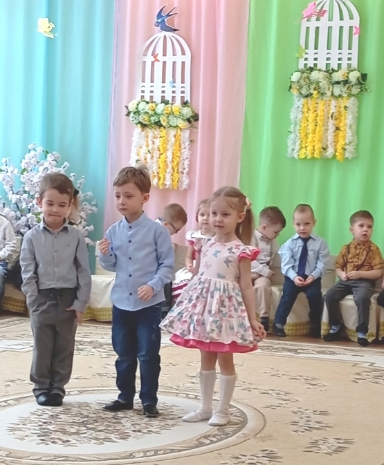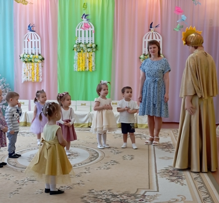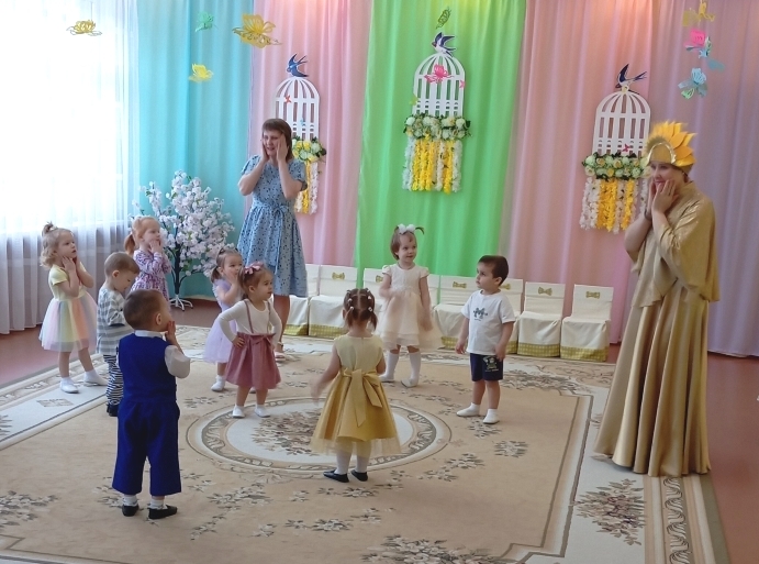 Воспитанники младших с удовольствием играли, танцевали и пели вместе со сказочными персонажами, которые приходили к ним в гости. Малыши зарядились весенним настроением.
