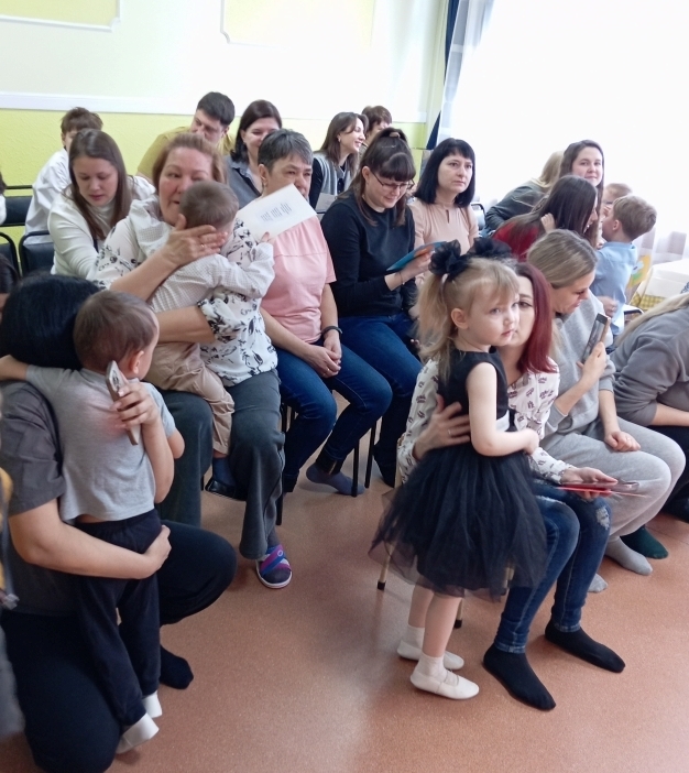 Взрослые с удовольствием принимали участие в совместных играх, но самым главным подарком для всех мам стали, конечно же, открытки и поделки, сделанные руками их детей.