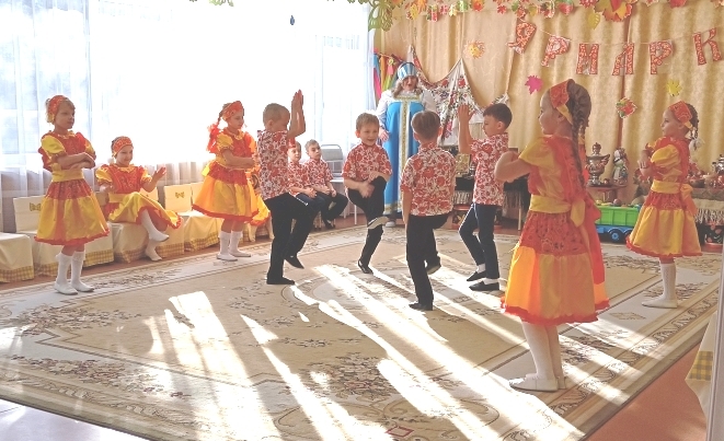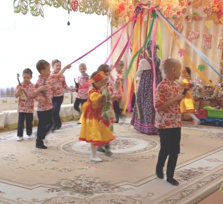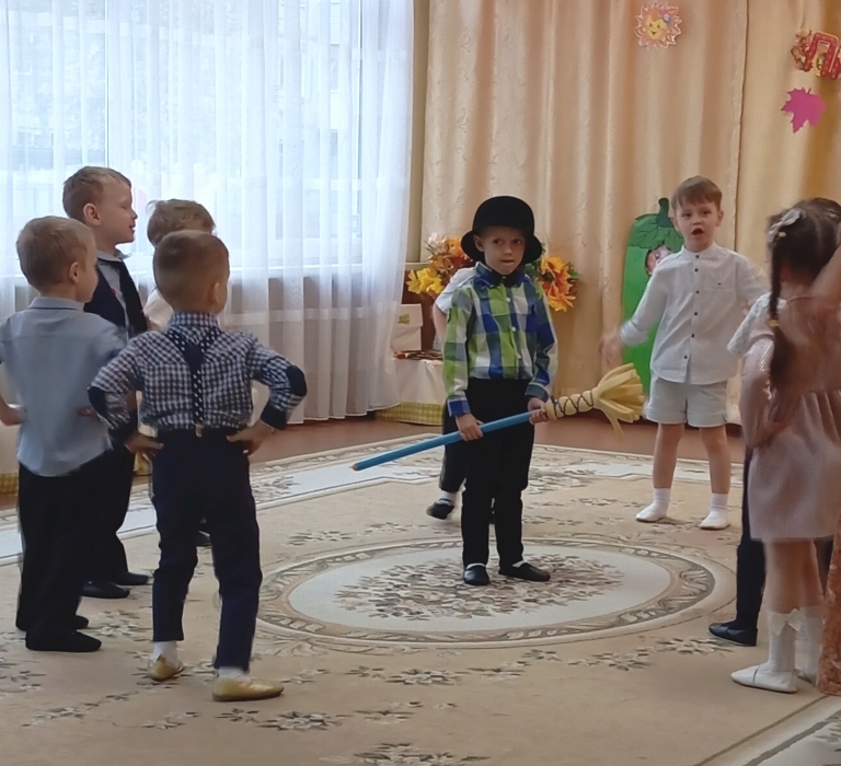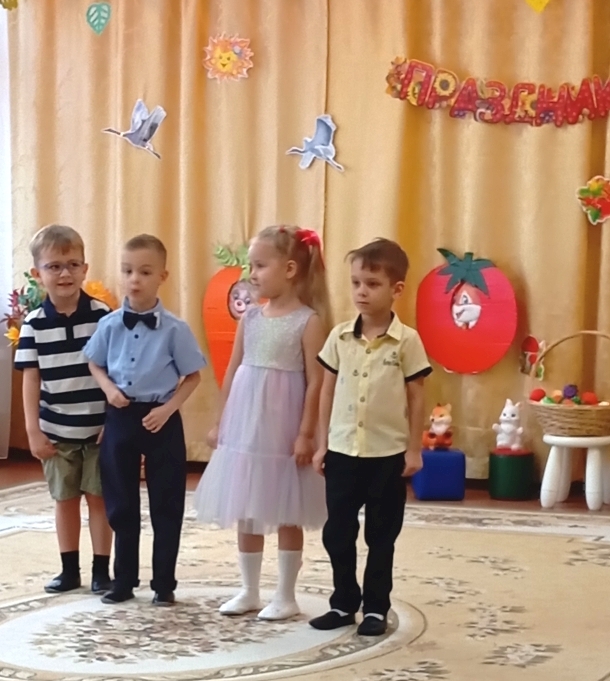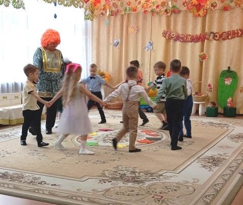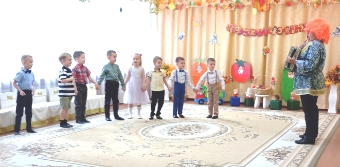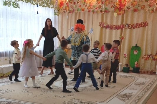 Воспитанники младшей группы встречали в гости Боровика. Дети средней группы погостили в огороде у Пугало. Вместе со сказочными персонажами дети играли, пели, танцевали.