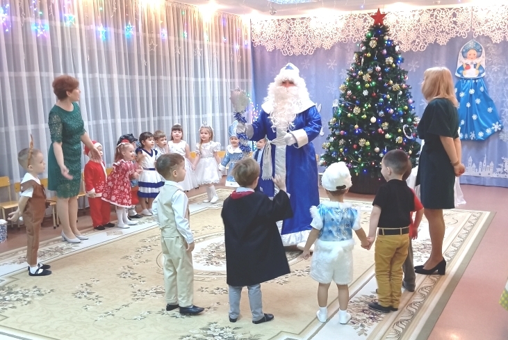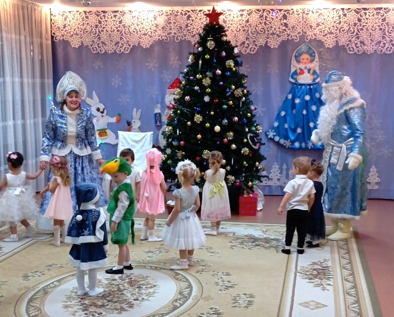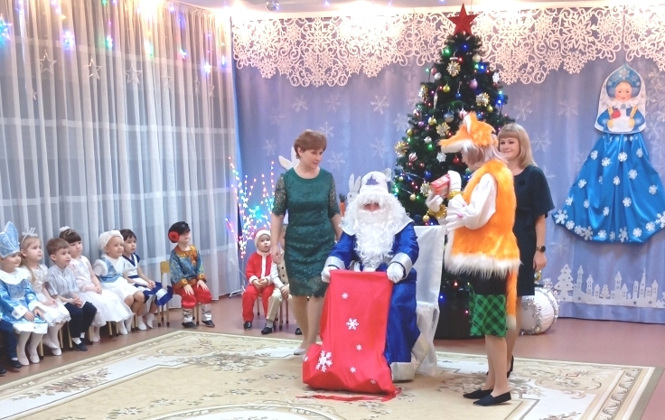 Для самых маленьких праздник начался с веселых игр с очаровательной Лисичкой и доброй Снегурочкой. А каким грандиозным событием стал приход самого Дедушки Мороза! Малыши встретили его с восторгом и искренним удивлением.